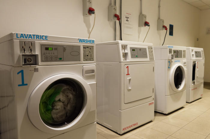 Lavadoras marca Speed Queen de 10 kg con la doble conexión de agua caliente y fría que permite a la lavadora lavar durante 40 minutos a 1200 centrifugados y secadoras marca Speed Queen de 10 kg que pueden producir calor eléctricamente, con gas metano o con gas GLP para insertar en un contexto puramente doméstico.
